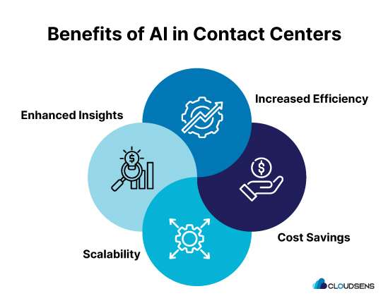 Implementing AI in contact centers offers various benefits, some of them are